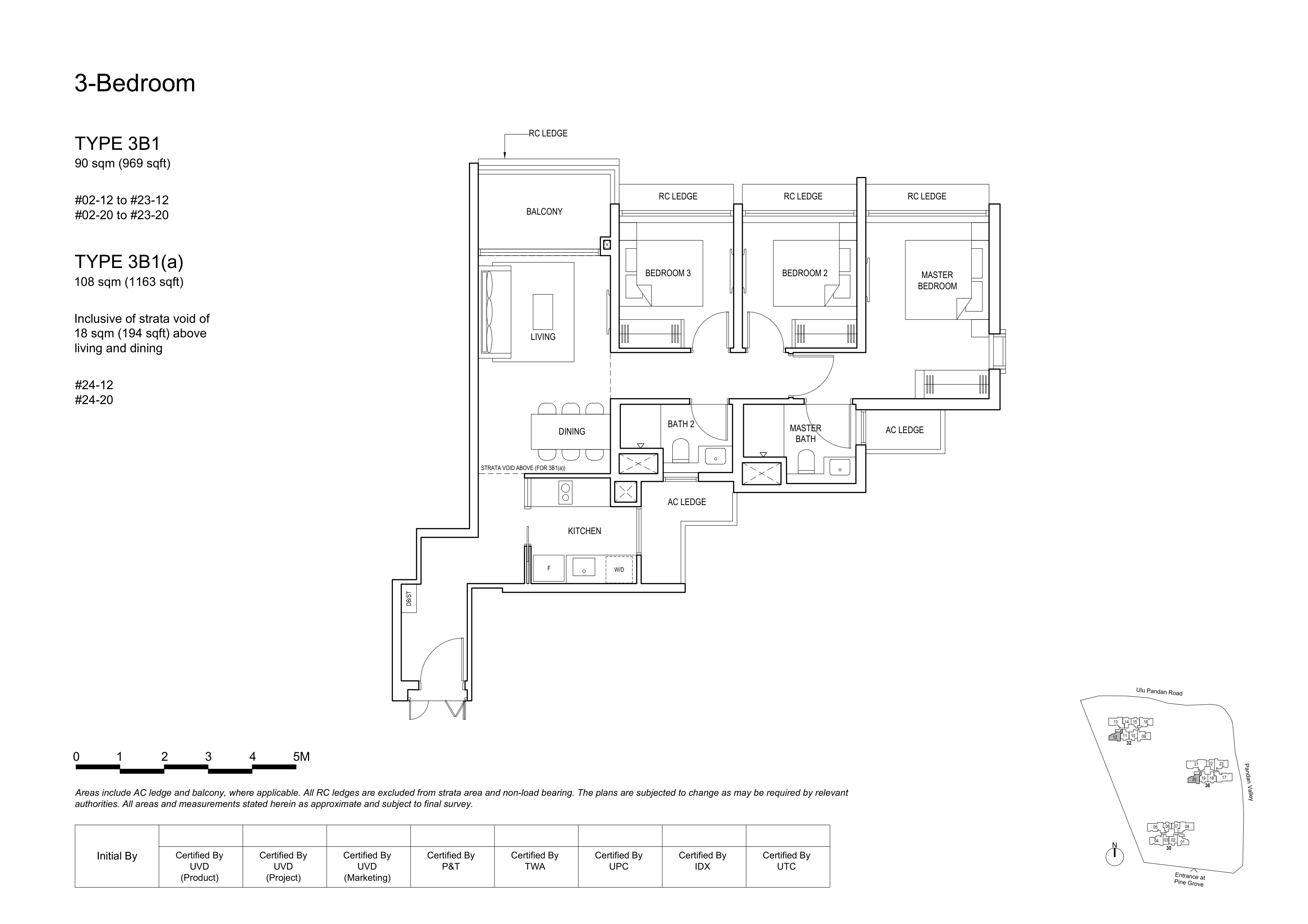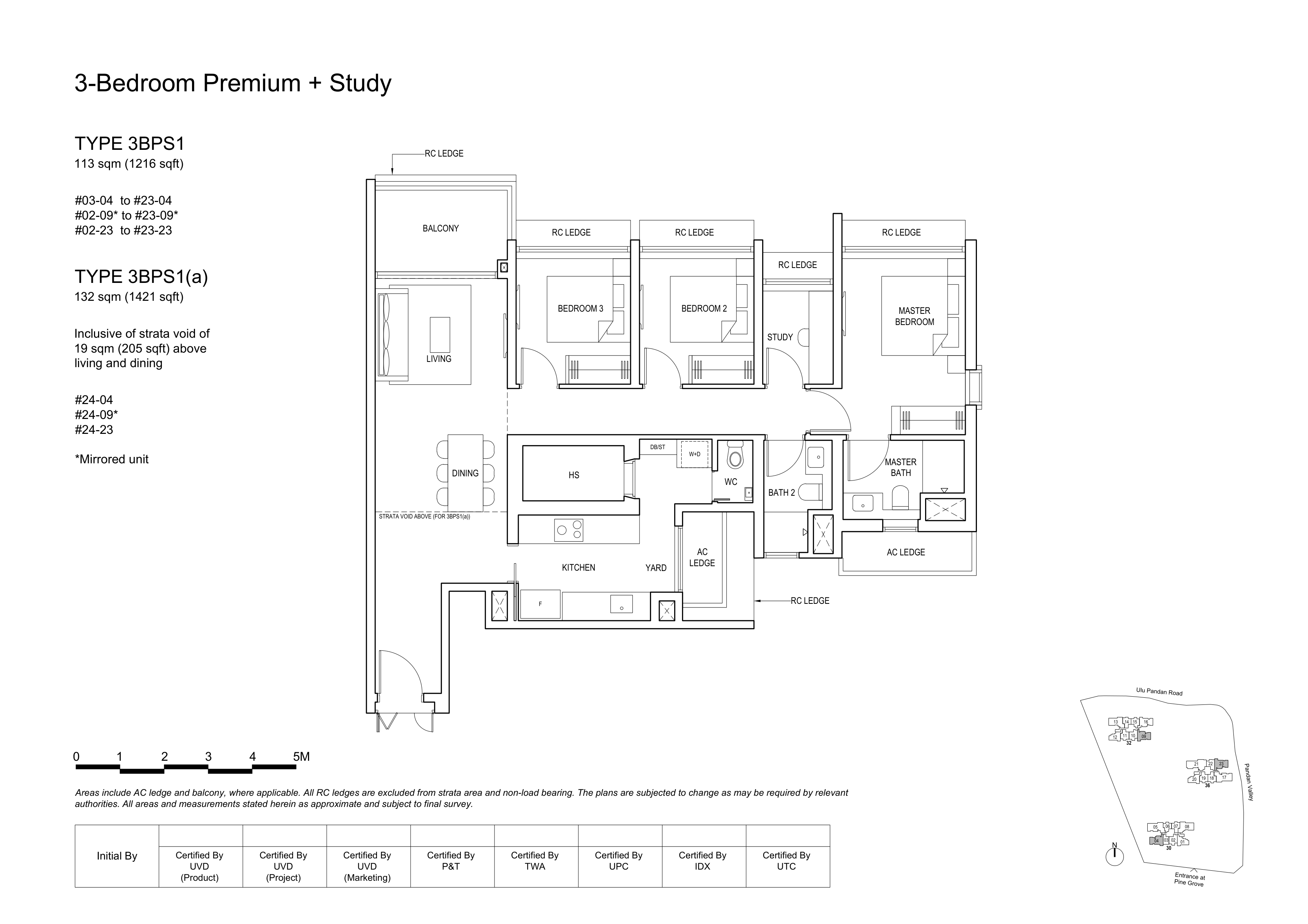 | 3 Bedroom Premium + Study | 91 | 1,216 - 1,421 | |